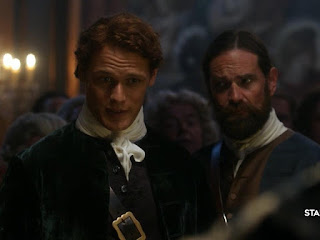Jamie on the other hand, is being run to his limit, playing politics, trying to garner information and like Claire, has the knowledge that a Jacobite uprising will end in the decimation of his culture and homeland. It's a huge weight to carry and it takes a toll on their relationship and at a key point in the episode it seems all for naught. Charles pressures Jamie into a meeting with Duvernay and it is at that meeting with Duvernay that we find out that Charles does not need as much money as Jamie nor Claire originally thought. It is revealed that high ranking members of English society are financially backing Charles and that means the amount of money needed isn't all that much. Charles also manages to turn Duvernay's head with he possibility of an alliance with England. It's to good a deal to pass up and Duvernay at least agrees to consider it and present it to King Louis once the proof is provided hat he does indeed, not need all that much from the treasury.